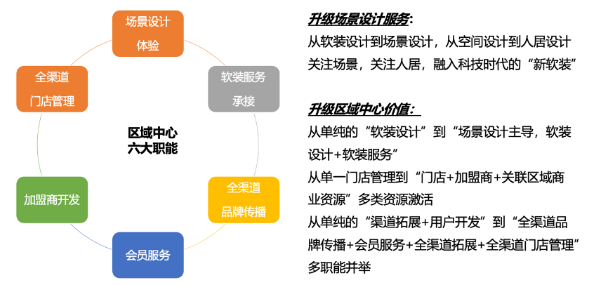 傳統(tǒng)的“軟裝服務(wù)”機構(gòu)只是提供“軟裝設(shè)計服務(wù)”,而唯漫軟裝升級的“場景設(shè)計服務(wù)”,拉升了區(qū)域軟裝服務(wù)價值,打造區(qū)域中心“六大職能”,助力區(qū)域軟裝服務(wù)及門店拓展。