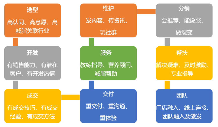 專業(yè)渠道團隊打造,從“渠道伙伴選型”入手,選擇對品牌高認同、高意愿、高減脂關聯(lián)行業(yè)的優(yōu)秀伙伴;同時強化其分銷拓展及銷售能力,保持足夠的開發(fā)熱情;有較強的成交能力,可以快速的交付減脂商品,提供優(yōu)質的減脂服務。更重要的是,積極維護“減脂社群”,推動代理商分銷,積極幫扶指導,全力創(chuàng)造團隊新價值,連接線上線下。