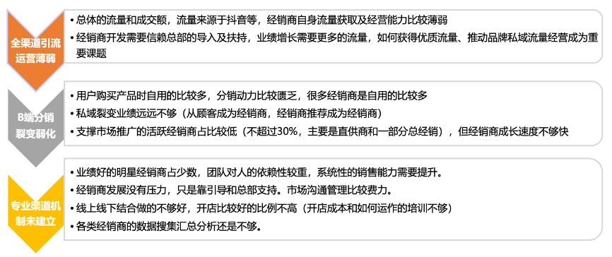 抓住了市場紅利:“社交新零售”快速崛起,以微信為載體的社群營銷大行其道,“品牌私域流量”運營成為行業(yè)的主流打法。同時,抖音日益成為企業(yè)流量的“新來源地”,公司憑借抖音流量等實現(xiàn)快速崛起,并由此招募經銷商推動“業(yè)績增長”。