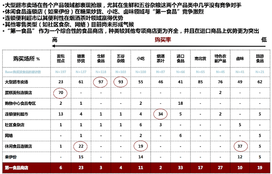 “老字號競爭優勢”之二:檔次及專業性優勢。站在食品產業競爭的角度來進行洞察,我們發現,從經營商品檔次和經營商品表現來看,我們發現在食品產業競爭中,“第一食品”在食品經營專業性和經營高檔商品上占據優勢地位,圍繞食品的多種商品經營和中高檔的商品定位,使其在行業競爭中獨樹一幟。