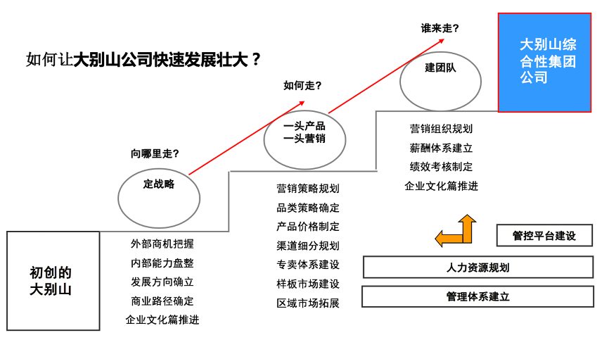 雙方經過數月的持續合作,共同梳理了大別山生態農業集團發展的戰略路徑,明確了集團發展方向及關鍵舉措,統一了班子思想,同時搭建了年度營銷團隊,推動了首期銷售招商,于6個月內建立了一支規范、專業的營銷團隊,快速搭建了 全渠道經營體系。
