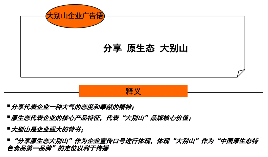明確企業廣告語為“分享原生態大別山”,充分植入原生態大別山的生態基因、歷史名望等,高舉“大別山生態農業”的旗幟,使企業整合各方資源更容易,彰顯企業原生態品牌價值。