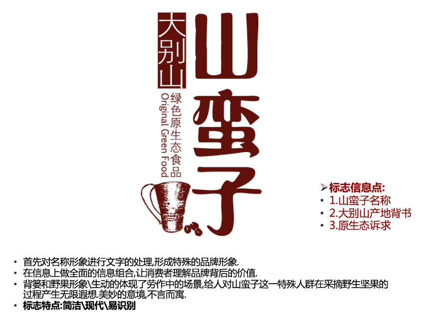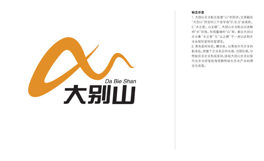 經過與大別山生態農業的深度溝通,高層對集團層面的“企業LOGO”標識已經有想法了,項目組在“承接高層意志”的基礎上點亮了品牌核心價值,建議其圍繞“大別山”強化標識認知,強化“原生態”價值,取得了公司高層的一致認可。