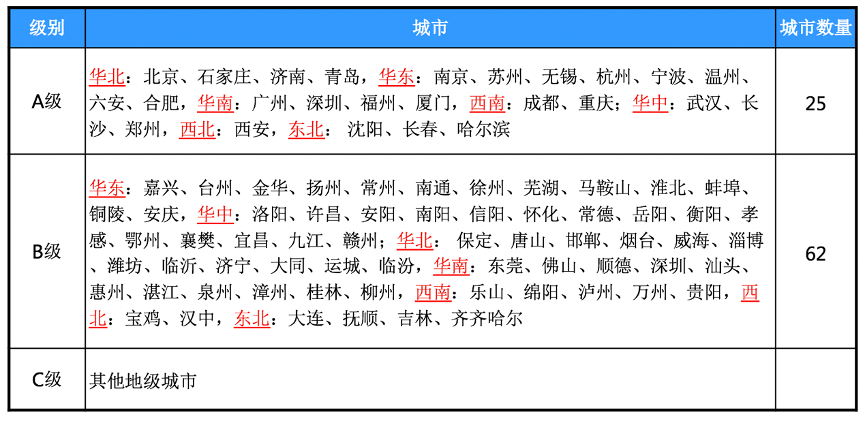 2)大別山食品將重點針對各區域的A、B級地市進行招商,并根據地市級別作為招商政策、銷售人員薪酬等級評定和差旅標準上分類確定的依據。