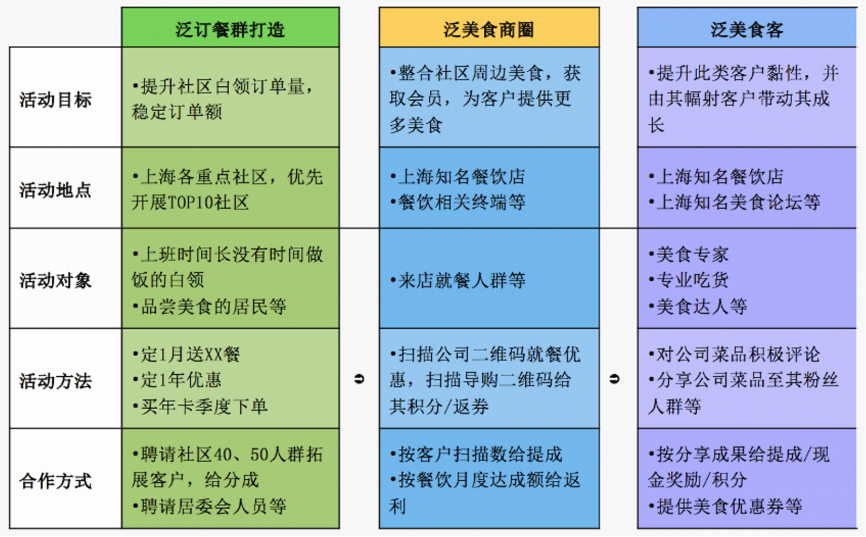 第三步:放大會員社群的連接作用,強化線下訂餐人群互動、美食合作互動和美食消費互動,打造“泛訂餐群”、“泛美食圈”、“泛美食客”等,實現廚房美食的多主體拉動。