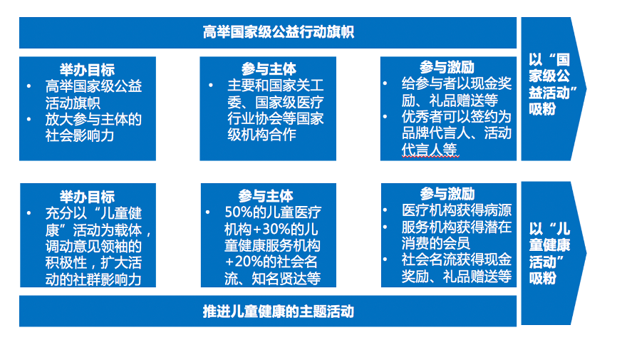 第一步:聯(lián)動吸粉。以“國家級公益活動”和“兒童健康活動”吸粉,推進意見領(lǐng)袖的高效聯(lián)動,以此實現(xiàn)社群快速吸粉。