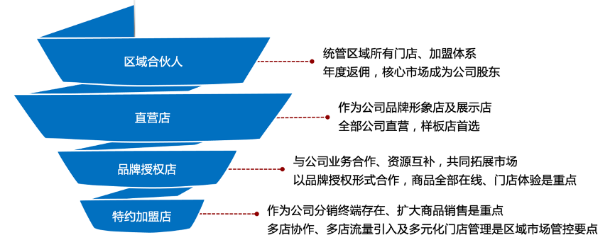 ü 扶植優(yōu)秀門(mén)店代理,提升門(mén)店贏利能力,以直營(yíng)店、品牌授權(quán)店和特約加盟店為主建立健全“品牌連鎖加盟體系”。