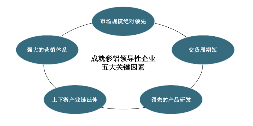 彩鋁應(yīng)用行業(yè)關(guān)鍵要素在于:商用市場為主,行業(yè)地位、產(chǎn)品專業(yè)化、服務(wù)專業(yè)化是“行業(yè)成功關(guān)鍵要素”。