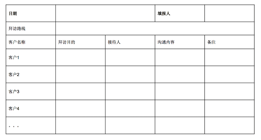 2、發(fā)展市場的拓展建議(附)——客戶拜訪表(日報表)