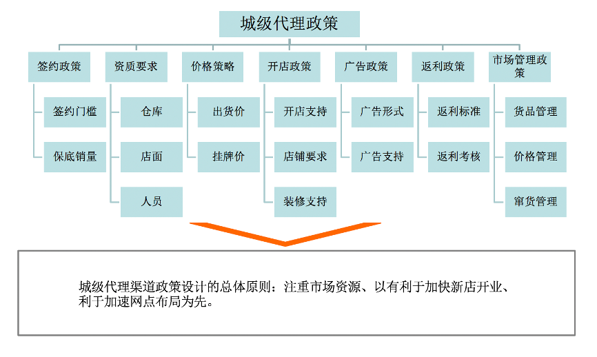 城級(jí)代理渠道政策的重點(diǎn):精耕細(xì)作區(qū)域市場(chǎng),加大專賣店下沉能力及快速增加門店數(shù)量。