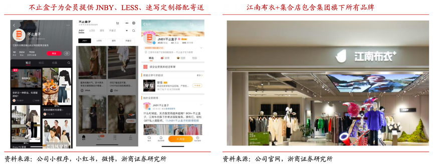 經典案例:根據公司公告、浙商證券研究所等綜合資訊表明,江南布衣推出 BOX+不止盒子會員服務,打破原有單一品牌的割裂狀態,使得消費者可以通過不同品牌搭配嘗試不同的穿搭風格,打造專屬自己的時尚造型。