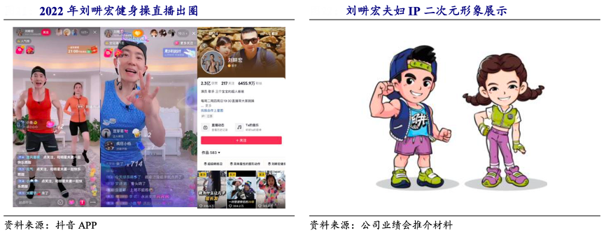 經典案例:根據抖音APP、公司業績會推介材料、開源證券研究所等綜合資訊表明,2021 年巨星合作頭部 MCN 機構無憂傳媒,抓住了疫情期間網民居家健身的外部訴求和抖音頭部健身 KOL 缺位的機遇,將劉畊宏成功運營為超級健身 KOL,使其在抖音的粉絲量自 2022 年 4 月的 500 萬左右,增長至 2022 年末的 7150 萬,成為抖音歷史上月度增粉最高 的賬號。