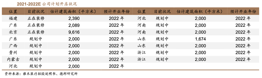 經典案例:根據雍禾醫療招股說明書、德邦研究所等綜合資訊表明,雍禾醫療公司戰略明確推進擴張,自建+收購并進積極鋪開門店觸達更多地域及下沉 市場。截止公司招股說明書,在 2022 年已裝修和已規 劃新開門店量達15 家,并預計于未來三年內實現累計門店量達百家。百家門店從 廣度+深度兩方面開設。