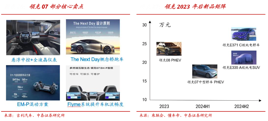經典案例:根據吉利汽車、懂車帝、乘聯會、中泰證券研究所等綜合資訊表明,領克 07 與 08 同平臺,繼續采用 EM-P 架構、Flyme Auto 車機系統,一改吉利前 期車機系統不夠流暢的痛點。