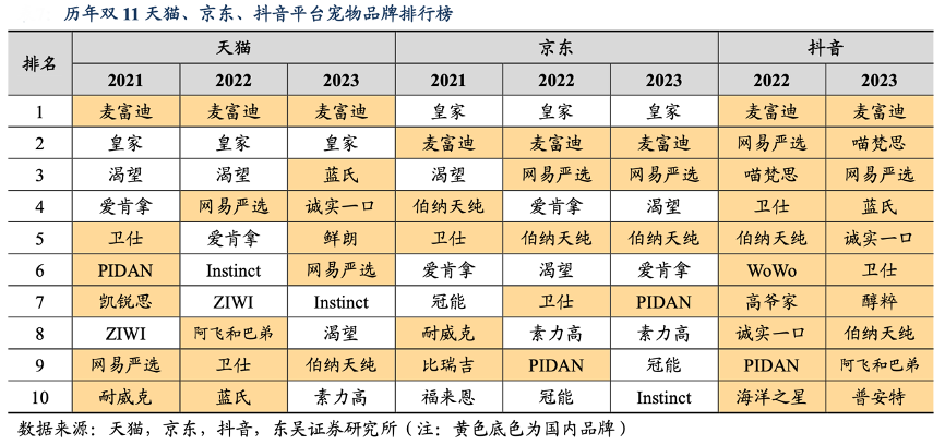 經(jīng)典案例:根據(jù)天貓、京東、抖音、東吳證券研究所等綜合資訊表明,乖寶寵物公司通過在天貓、京東、抖音上開設品牌自營店的模式入駐電商平臺,線上經(jīng)銷方面:公司通過拓展京東自營、代運營等線上經(jīng)銷商撬動更多推廣資源。在 2023 年雙十一期間,公司全網(wǎng)銷售額同比增長 28%,突破 3.6 億元。其中,麥富迪在天貓、抖音、拼多多平臺 寵物行業(yè)綜合品牌排名第一,在京東的綜合排名位列第二。