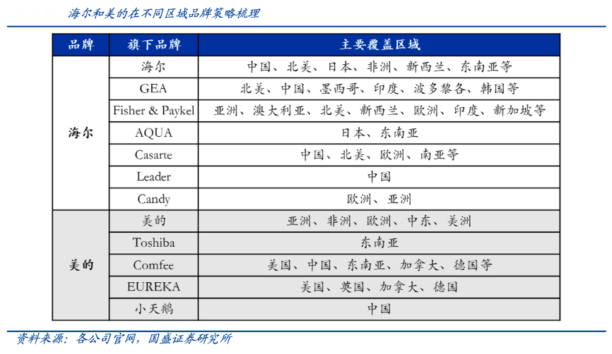 經典案例:根據各公司官網、國盛證券研究所等綜合資訊表明,海爾通過收并購歐洲、北美等核心區域的知名品牌,全球化道路不斷鋪平。一方面,海外消費 者品牌忠誠度較高,國內品牌出海知名度相對不足,收并購國外老牌可以快速打開海外市場;另一方面,收并購海外品牌也可以幫助中國企業更快獲取渠道資源,降低拓渠道成本和難度。