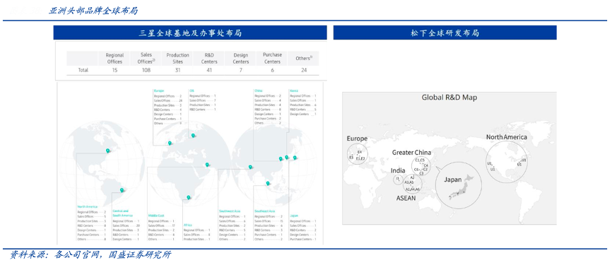 經(jīng)典案例:根據(jù)各公司官網(wǎng)、國(guó)盛證券研究所等綜合資訊表明,以三星為例,截至 2023 年,三星在全球擁有 31 個(gè)生產(chǎn)基地,近年三星引入新環(huán)保技術(shù),將其擴(kuò)展至歐洲、韓國(guó)和美國(guó)市場(chǎng),通過(guò)技術(shù)提升增加其產(chǎn)品競(jìng)爭(zhēng)力,滿足不同消費(fèi)地區(qū)的市場(chǎng)環(huán)保需求。