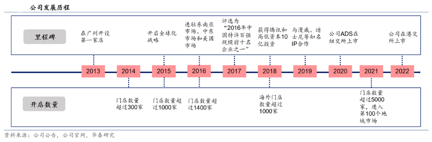 經典案例:根據公司公告、公司官網、華泰研究等綜合資訊表明,名創優品依靠國內供應鏈優勢,為消費者提供三高三低(“高顏值”、“高質量”、“高頻率”、“低成本”、“低加價”、“低價格”)的生活日用品。公司國內門店布局“以加盟為主、自營為輔”,并在 2015 年開啟海外業務布局。2020 年底,公司推出潮玩集合店品牌 TOP TOY,進軍潮玩零售領域。根據弗若斯特沙利文,公司 2021 年全球/中國自有品 牌綜合業務(生活家居領域)的 GMV 實現 180/108 億元,全球/中國市占率分別為 6.7%/11.4%,雙市場均位列行業第一。