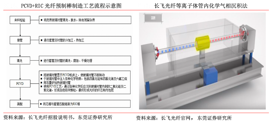 經(jīng)典案例:根據(jù)長(zhǎng)飛光纖招股說(shuō)明書(shū)、東莞證券研究所等綜合資訊表明,長(zhǎng)飛光纖是國(guó)內(nèi)第一家擁有光纖預(yù)制棒生產(chǎn)能力的企業(yè),同時(shí)也是行業(yè)內(nèi)為數(shù)不多的可以同時(shí)通過(guò) PCVD 工藝和 VAD+OVD 工藝進(jìn)行光纖預(yù)制棒生產(chǎn)的企業(yè)之一,公司掌握的“PCVD+RIC”光纖預(yù)制棒生產(chǎn)技術(shù)處于世界領(lǐng)先水平,能夠?qū)饫w的折射率剖面進(jìn)行精確控制。