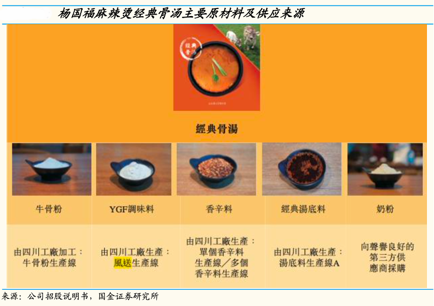 經典案例:根據公司招股說明書、國金證券研究所等綜合資訊表明,楊國福創(chuàng)新麻辣燙湯底配方,通過加入奶粉等營養(yǎng)成分,使麻辣燙更符合大眾口味,公司“經典骨湯”配方經典、有辨識度,由于“麻”、“辣”具有一定成癮性,湯底風味足、能形成一定口味粘性,是品牌擁有長生命周期的重要支撐。