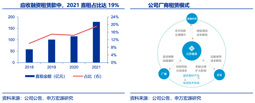 經(jīng)典案例:根據(jù)公司公告、申萬(wàn)宏源研究等綜合資訊表明,隨著廠商租賃業(yè)務(wù)模式不斷成熟,目前江蘇租賃公司業(yè)務(wù)已經(jīng)從傳統(tǒng)的醫(yī)療、基礎(chǔ)設(shè)施、教育、印刷等領(lǐng)域滲透到適合廠商租賃和直租業(yè)務(wù)的新能源、高端設(shè)備等新興行業(yè),形成了覆蓋十大板塊 50 多個(gè)細(xì)分市場(chǎng)的格局,形成了 2 個(gè)百億級(jí)、2 個(gè)五十億級(jí)、多個(gè)二十億級(jí)及若干億級(jí)市場(chǎng)的多層次業(yè)務(wù)結(jié)構(gòu)。