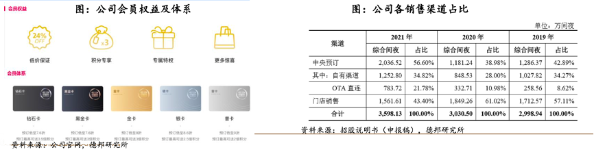 經典案例:根據公司官網、德邦研究所等綜合資訊表明,東呈酒店公司已建立起完善的銷售渠道,會員粘性高,會員消費間夜數占比70%。截至2021年底,東呈會會員數量超過5,500萬人,相比2019年初增長140%;2021年線上會員月活量平均超過120萬人。