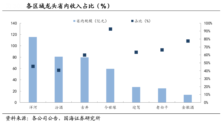 經典案例:根據各公司公告、國海證券研究所等綜合資訊表明,回顧區域龍頭的成長歷程,多數公司增長主要由省內市場貢獻。一方面,行業競爭越來越激烈,龍頭公司可以借助其品牌和渠道優勢,在省內持續擠壓三四線小酒企,不斷擴大自身市場份額;另一方面,消費升級帶來價位提升,省內產品結構不斷上移,拉動區域龍頭收入規模和利潤水平提升。