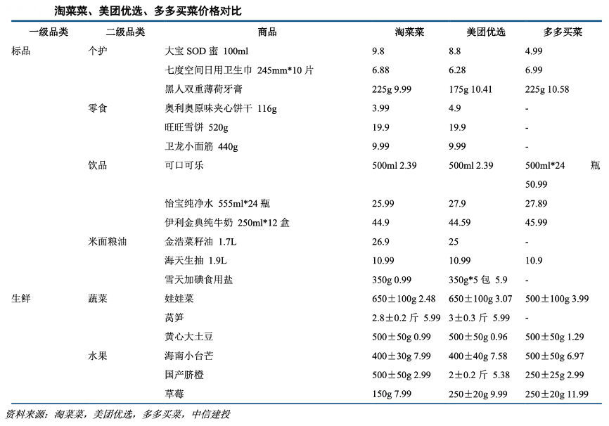 經(jīng)典案例:根據(jù)淘菜菜、美團優(yōu)選、多多買菜、中信建投等綜合資訊表明,在性價比基礎上,淘菜菜強調(diào)好品質(zhì)和豐富性,希望為下沉市場帶來一日三餐的消費升級,而不是與線下消費場景進行簡單的價格競爭。
