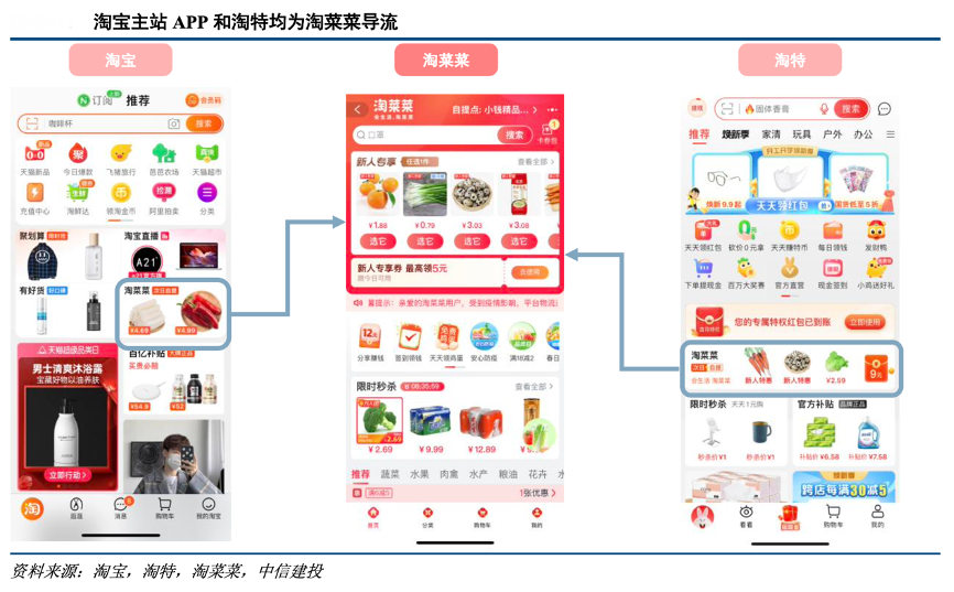 經(jīng)典案例:根據(jù)淘寶、淘特、淘菜菜、中信建投等綜合資訊表明,淘寶、淘特、小程序多端融合,尤其將淘菜菜加入首頁消費頻道后,淘寶、淘特的用戶消費場景均更加豐富,消費頻次和粘 性也大幅提升。同時,其以多場景觸達用戶,淘菜菜既有私域的團長運營群,也有公域的直播互動場景,兩者互為補 充,更好服務消費者。基于 M2C 鏈路上的 4 大核心能力建設,淘菜菜在一年內(nèi)完成了商業(yè)基礎設施的快速布局。