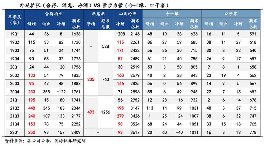 經(jīng)典案例:根據(jù)各公司公告、國海證券研究所等綜合資訊表明,對比舍得酒鬼和今世緣口子近年來經(jīng)銷商數(shù)量變化,可以發(fā)現(xiàn)三線次高端是通過短期招商鋪貨在低基數(shù)基礎(chǔ)上實現(xiàn)波段式增長,而區(qū)域龍頭的經(jīng)銷商數(shù)量穩(wěn)定小幅擴張,業(yè)績則是穩(wěn)扎穩(wěn)打的持續(xù)穩(wěn)健增長。