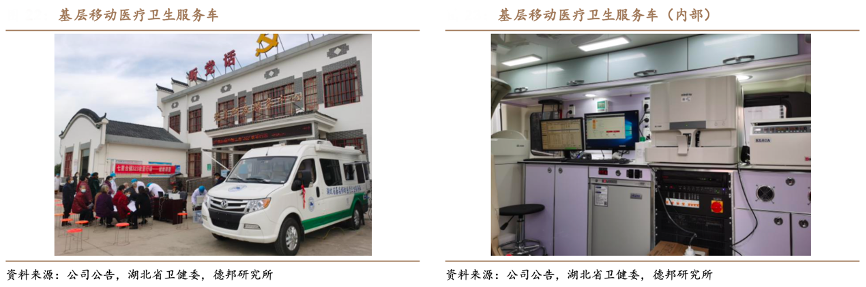經典案例:根據公司公告、湖北省衛健委、德邦研究所等綜合資訊表明,健麾信息布局零售藥店智能化市場,拓展2G政府合作業務,其先后與高濟醫療、益豐大藥房、叮當快藥、第一醫藥、老百姓大藥房等醫藥零售領域的龍頭達成戰略合作,采取設備投放的創新服務收費模式打造未來藥店,試點合作門店數不斷增加。2021年成功獲得湖北省衛生健康委員會的基層移動醫療衛生服務車項目(車載醫療設備)的大額訂單,合同金額1.96億元。
