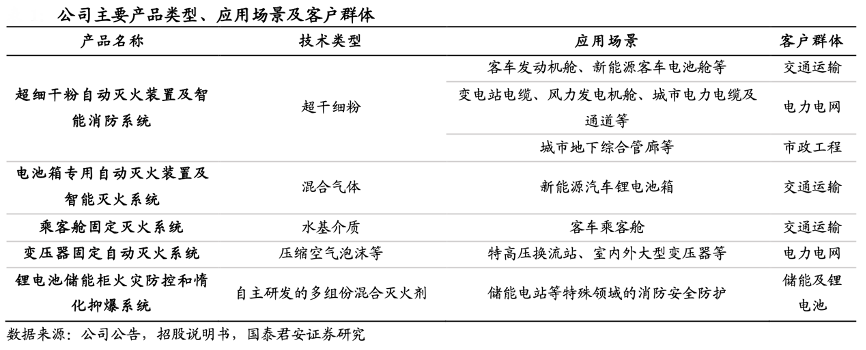 經(jīng)典案例:根據(jù)公司公告、招股說明書、國(guó)泰君安證券研究等綜合資訊表明,國(guó)安達(dá)自動(dòng)滅火產(chǎn)品不斷升級(jí),下游應(yīng)用場(chǎng)景持續(xù)拓寬。其契合下游專業(yè)市場(chǎng)需求及自動(dòng)化、智能化趨勢(shì),先后創(chuàng)新性地研發(fā)推出超細(xì)干粉自動(dòng)滅火裝置、電池箱專用自動(dòng)滅火裝置、變壓器固定自動(dòng)滅火系統(tǒng)、鋰電池儲(chǔ)能柜火災(zāi)防控和惰化抑爆系統(tǒng)等安全應(yīng)急產(chǎn)品,不斷提升公司經(jīng)營(yíng)范圍。