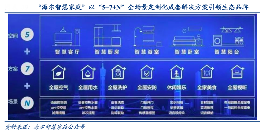 經(jīng)典案例:根據(jù)海爾智慧家庭公眾號、華創(chuàng)證券等綜合資訊表明,卡薩帝積極推動高端套系產(chǎn)品融入三翼鳥家居生態(tài)戰(zhàn)略,以場景替代產(chǎn)品,對應(yīng)推出不同的高端智慧成套方案,并配合海爾主品牌產(chǎn)品,涵蓋智慧客廳、智慧廚房、智慧臥室等 5 大生活場景,并配合用電用水等 7 大全屋解決方案,對 N 個(gè)生活場景個(gè)性化運(yùn)用。例如廚房場景中卡薩帝冰箱除了能讓食材控氧保鮮外,還能通過分析食材數(shù)據(jù)推薦菜單,而根據(jù)菜譜灶具可以智能控火,無需人為照看。
