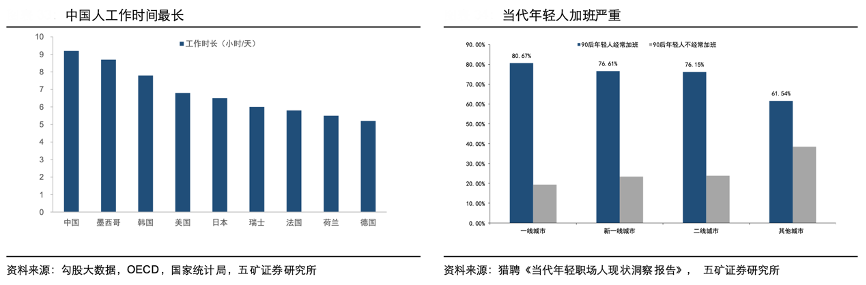 經典案例:根據勾股大數據、OECD、國家統計局、獵聘《當代年輕職場人現狀洞察報告》、五礦證券研究所等綜合資訊表明,OECD的數據表明中國是世界上工作時長最 多的國家,同時90 后年輕人加班已逐漸趨于 常態,隨著社會競爭的日益激烈,人們會逐漸向更快的生活節奏過渡,對緩解疲勞,保持專注度的能量飲料需求也會增加。