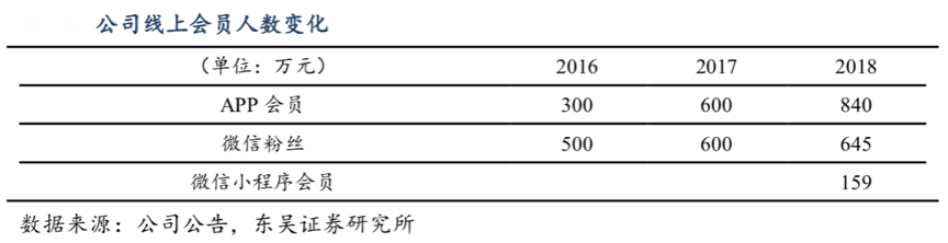 經典案例:據公司公告、東北證券研究所等綜合資訊表明,目前天虹在線上的銷售渠道包括獨立APP、微信公眾號、微信小程序、PC、微品等多個渠道,且會員均全部打通。截至 2018 年底,天虹整體會員人數 1800 萬、數字化會員人數達 1,644 萬,其中 APP 會員人數 840 萬,微信粉絲 645 萬,微信小程序會員 159 萬,消費活躍用戶數占比 87%。2018 年公司的線上交易額達到 18 億,同增 32%