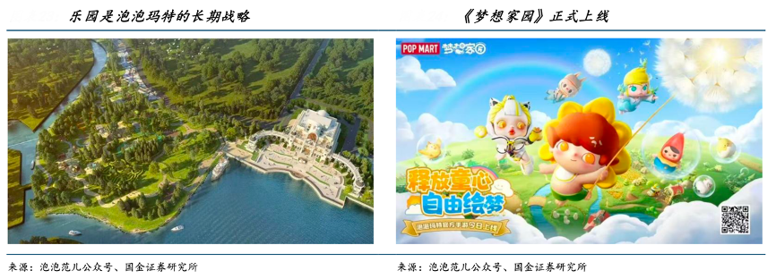 經典案例:根據泡泡范兒公眾號、國金證券研究所等綜合資訊表明,2024 年 6 月,泡泡瑪特推出首款自研手游《夢想家園》,將"模擬經營+派對玩法"與旗下五款頭部 IP 進行融合創新。目前,泡泡瑪特通過探索虛實聯動策略,借助游戲場景聯動城市樂園的線下場景,強化 IP 敘事能力。