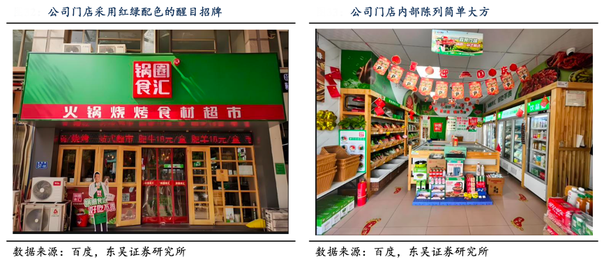 經(jīng)典案例:根據(jù)百度、東吳證券研究所等綜合資訊表明,鍋圈公司的門店招牌醒目地展示公司的品牌名 和 logo,而且采用醒目的紅色和綠色搭配,匹配公司走親民路線的定位。